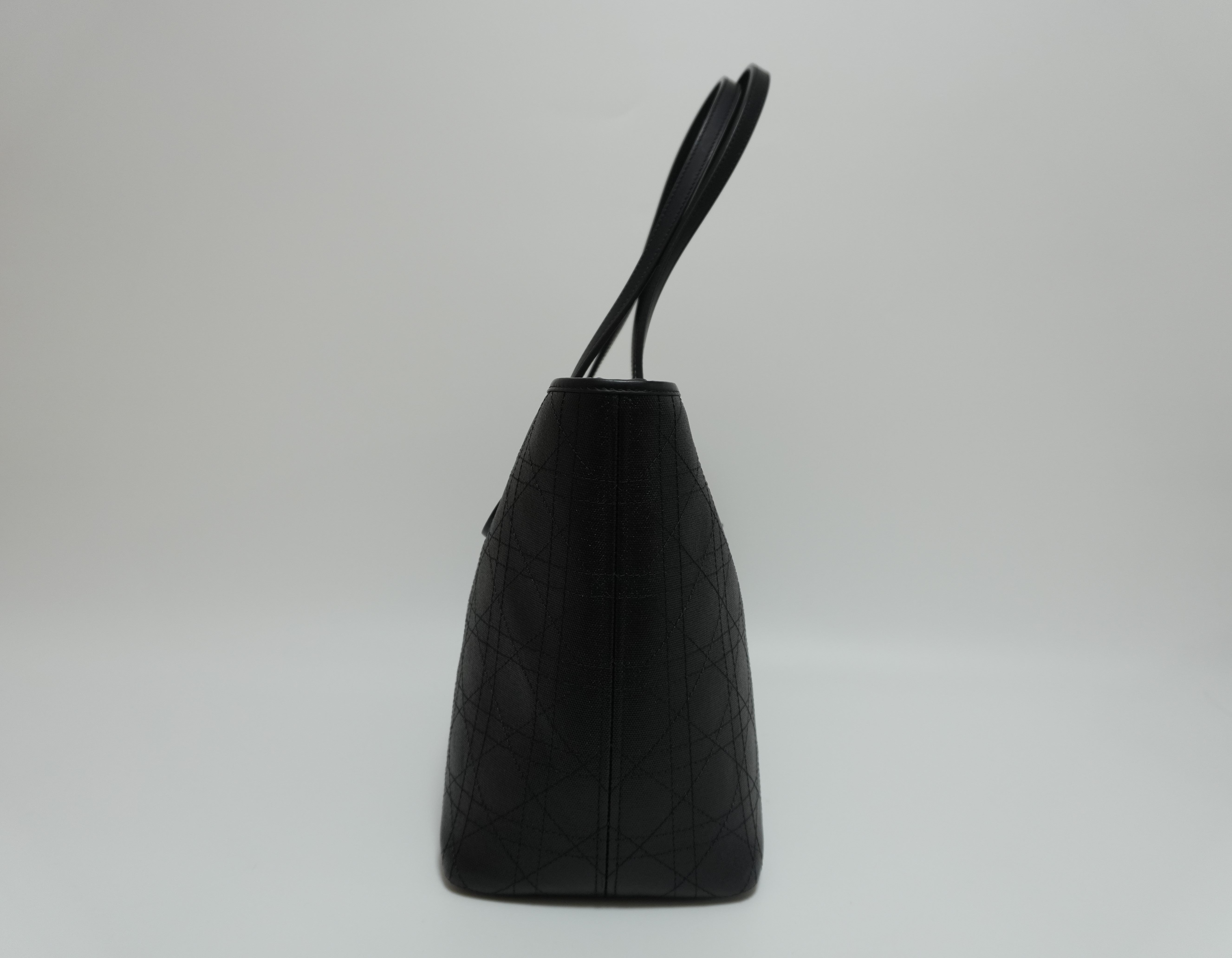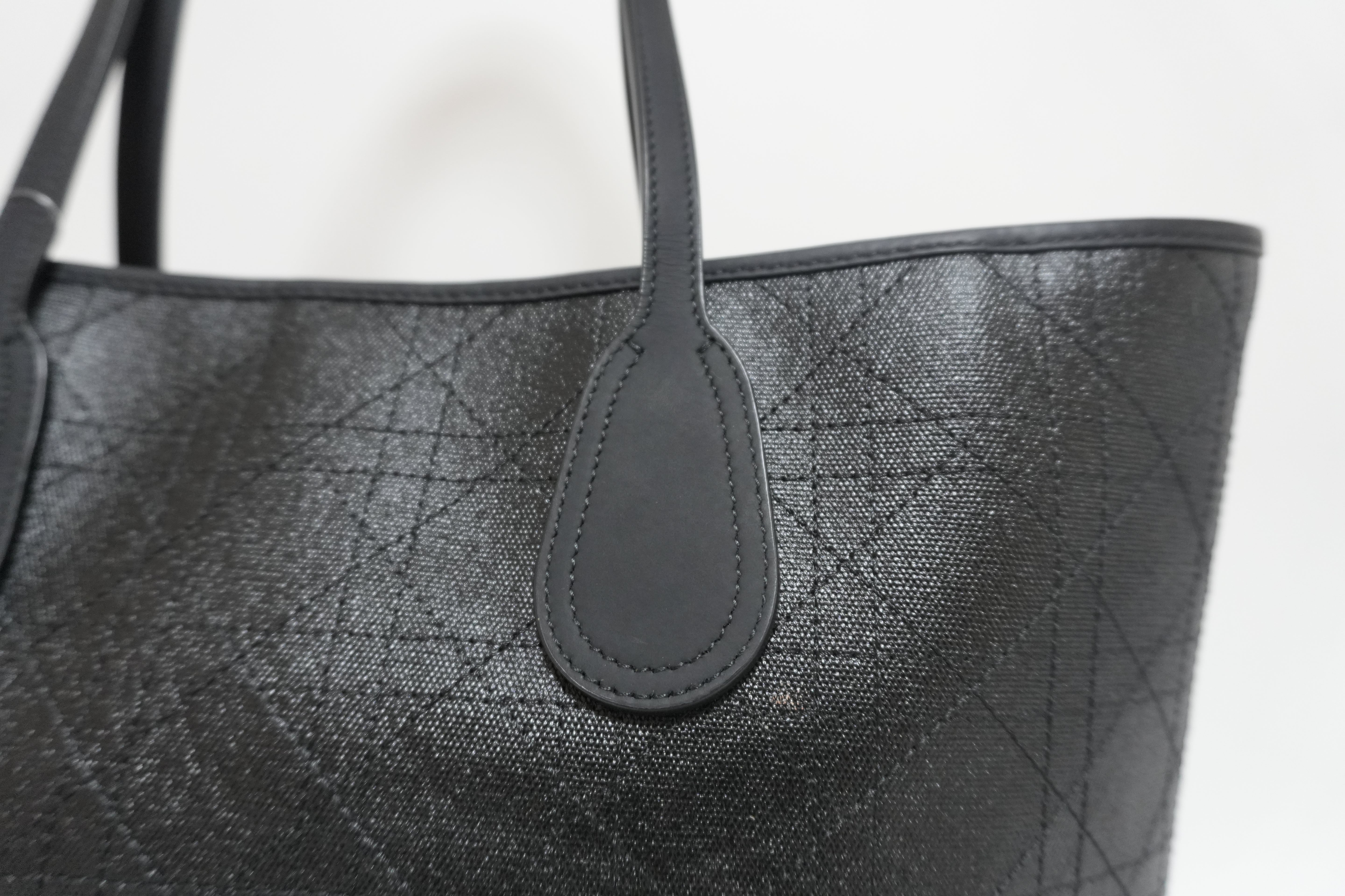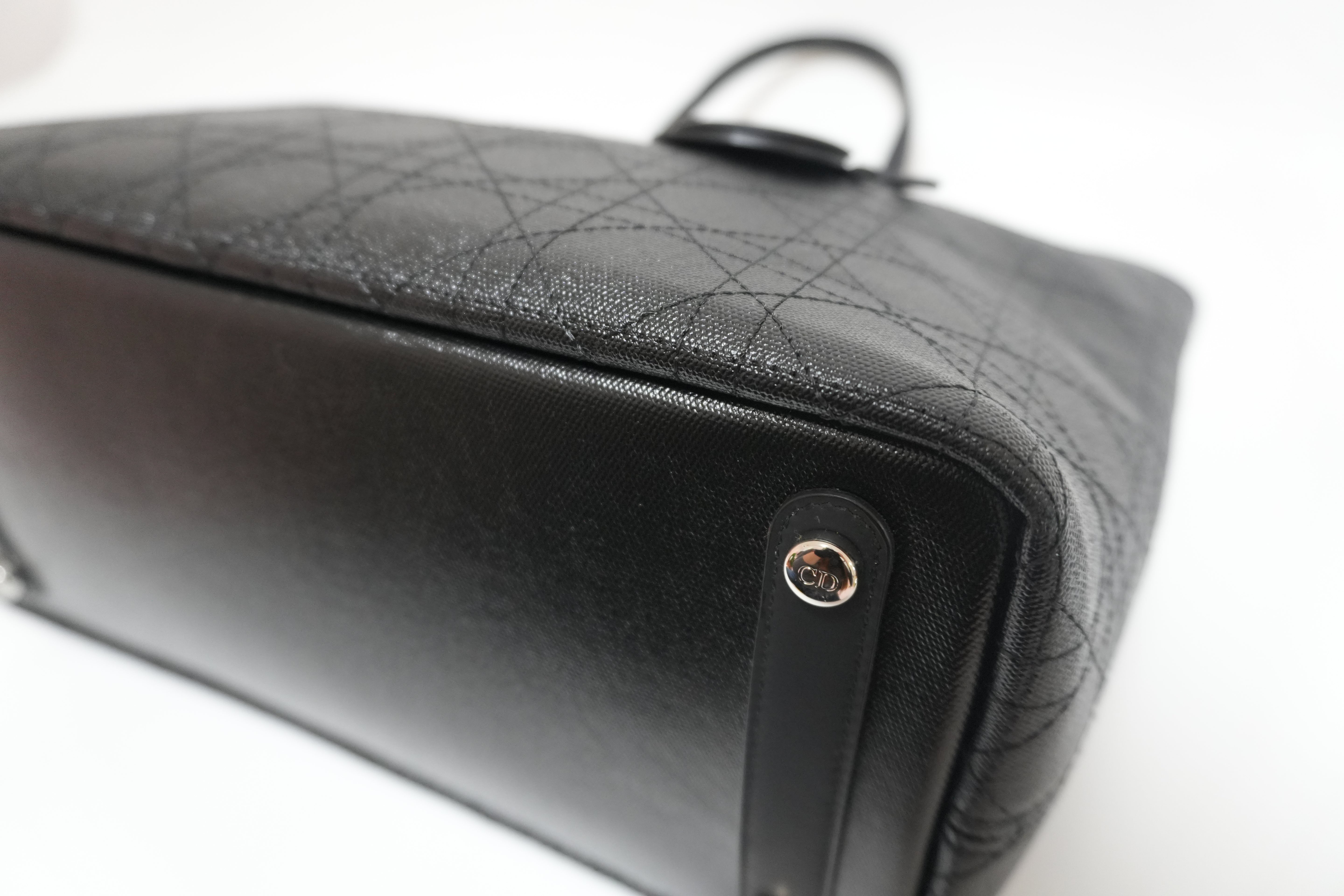 Lady Dior Leather Rosato Panarea Tote Bag Black Used