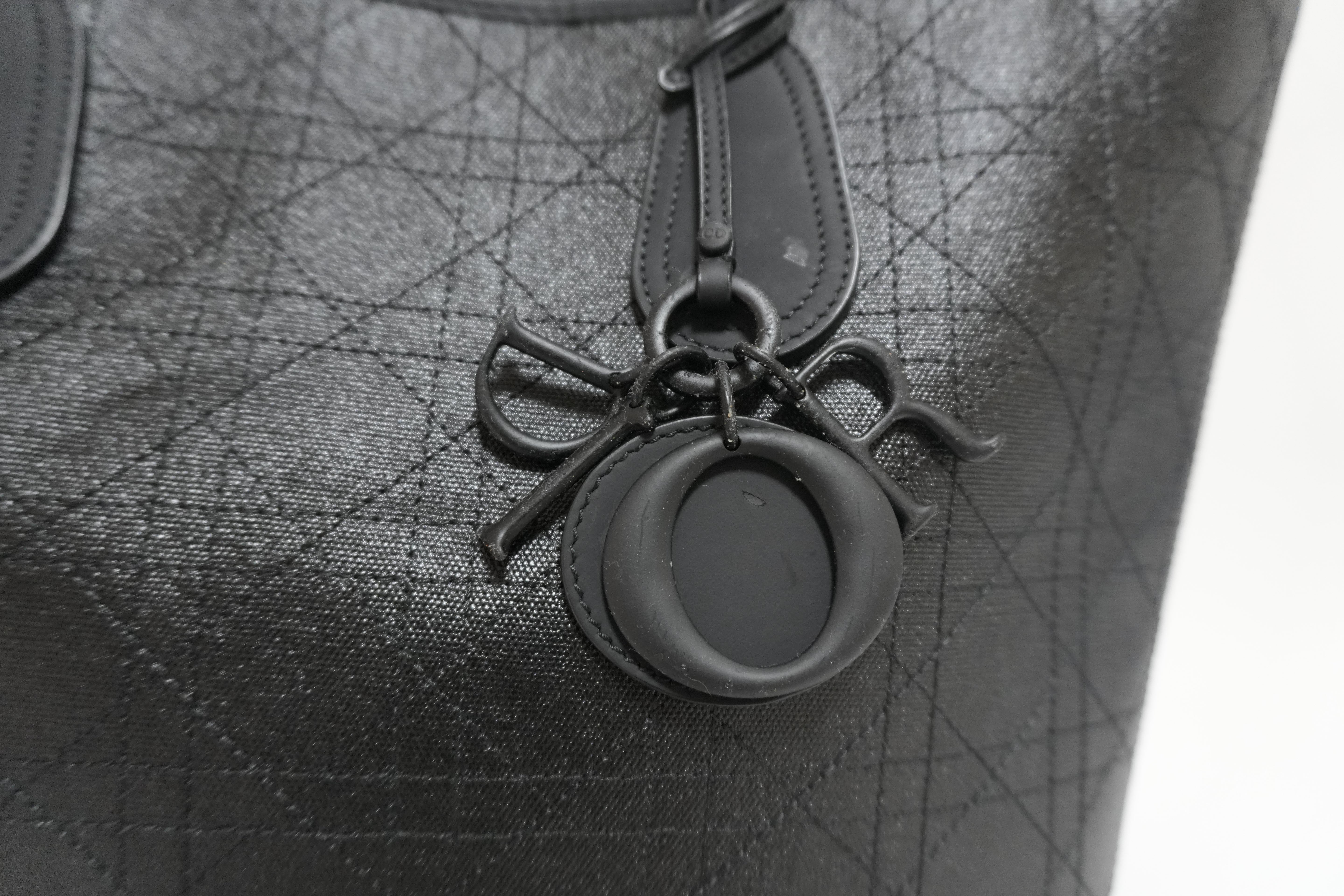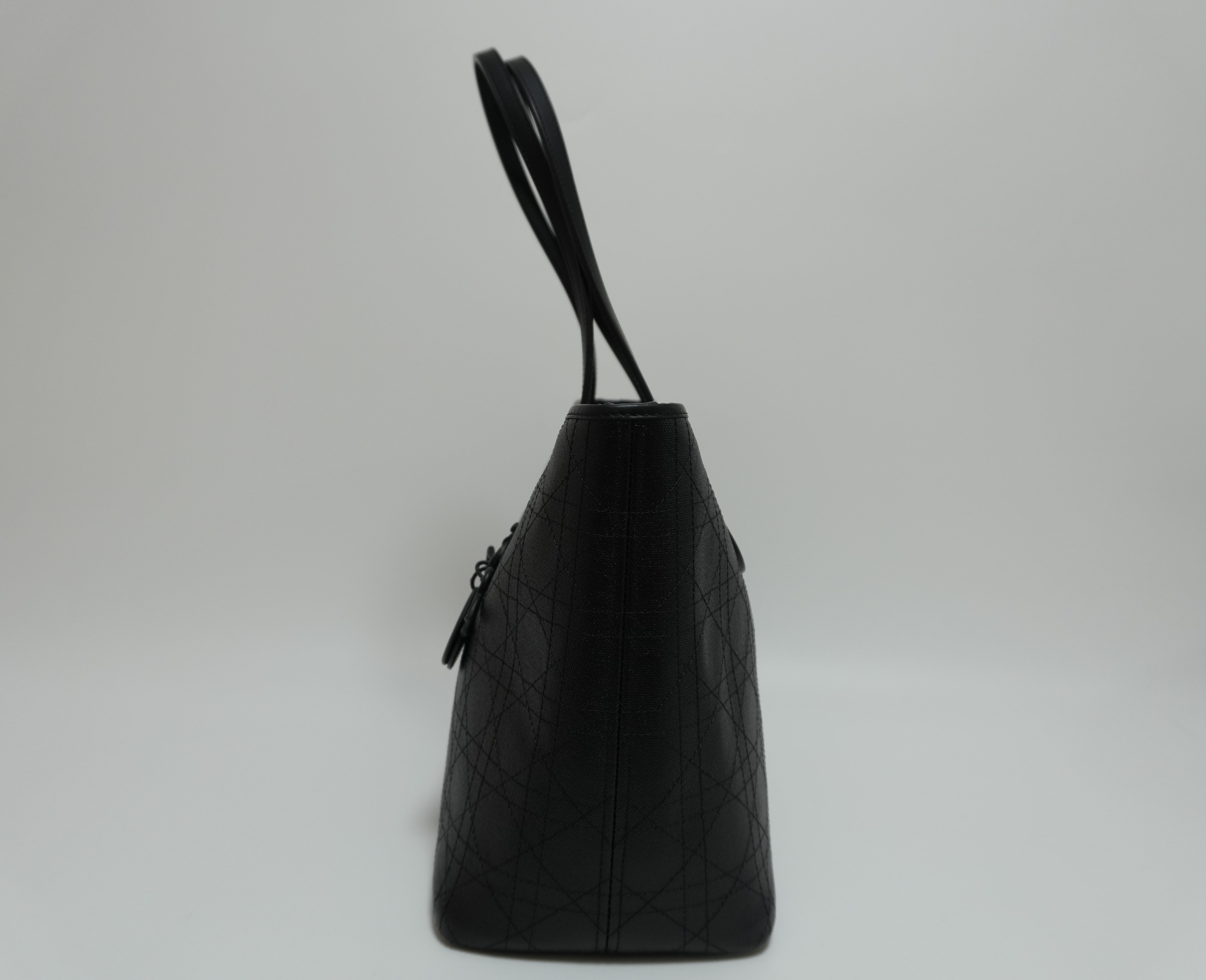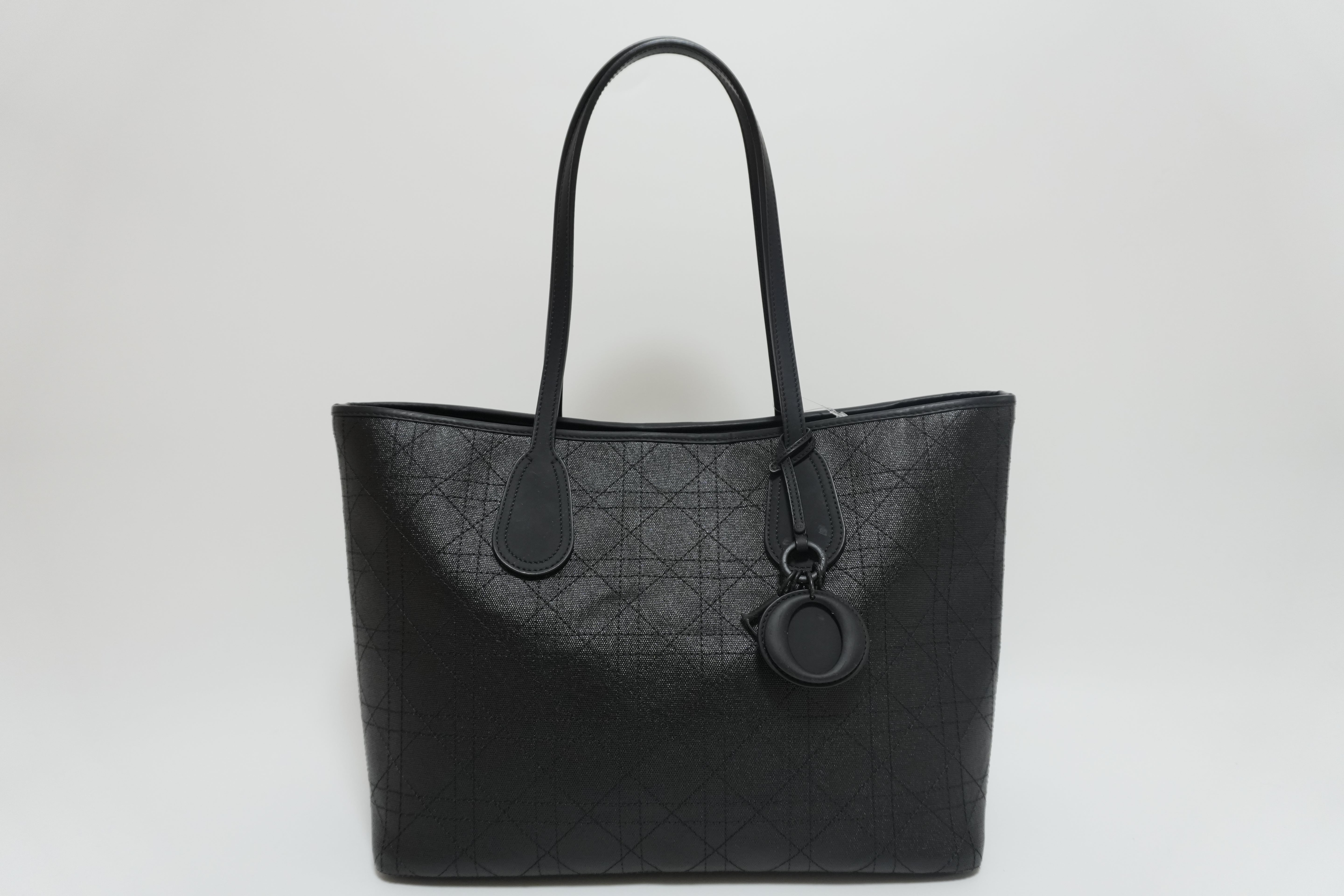 Lady Dior Leather Rosato Panarea Tote Bag Black Used