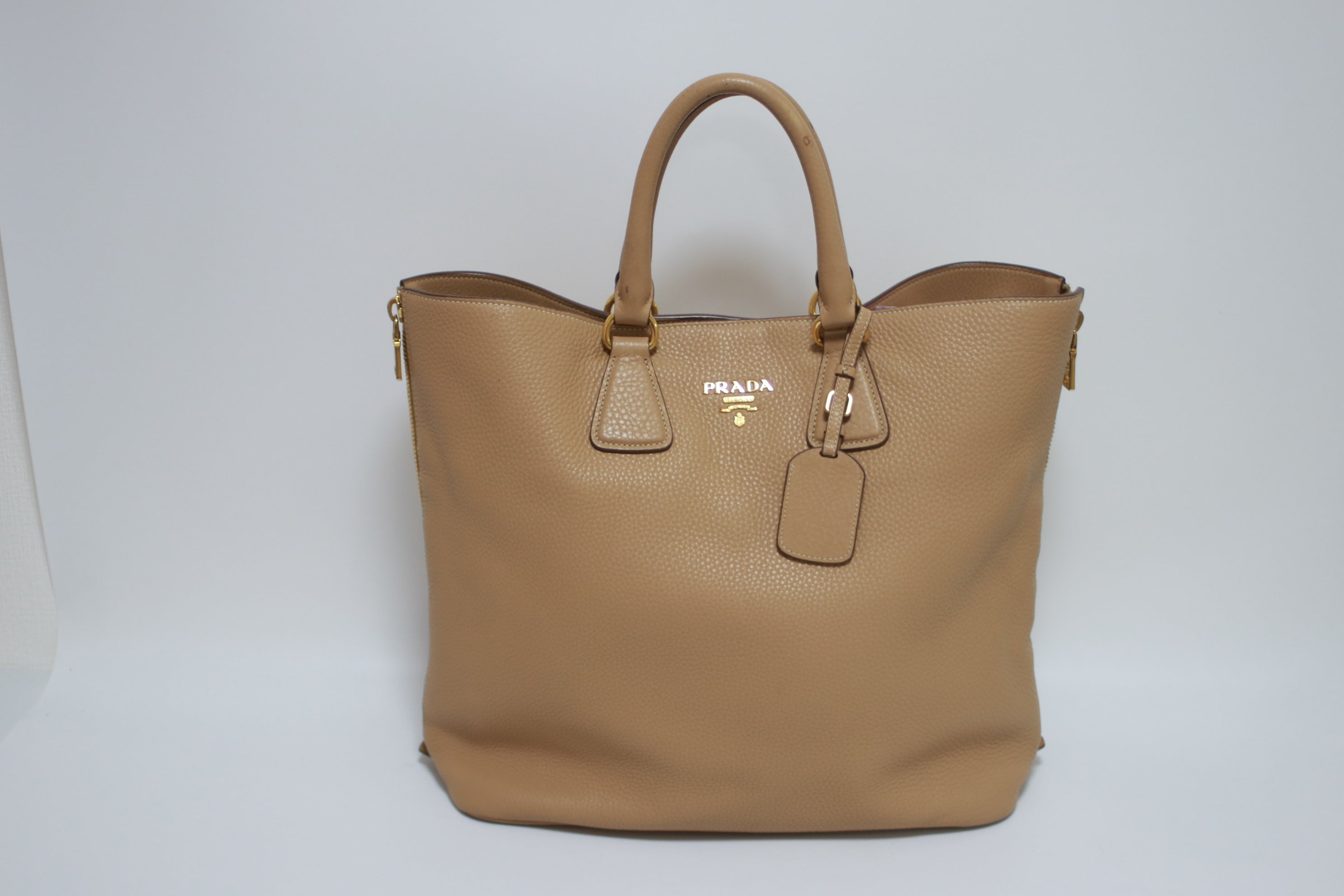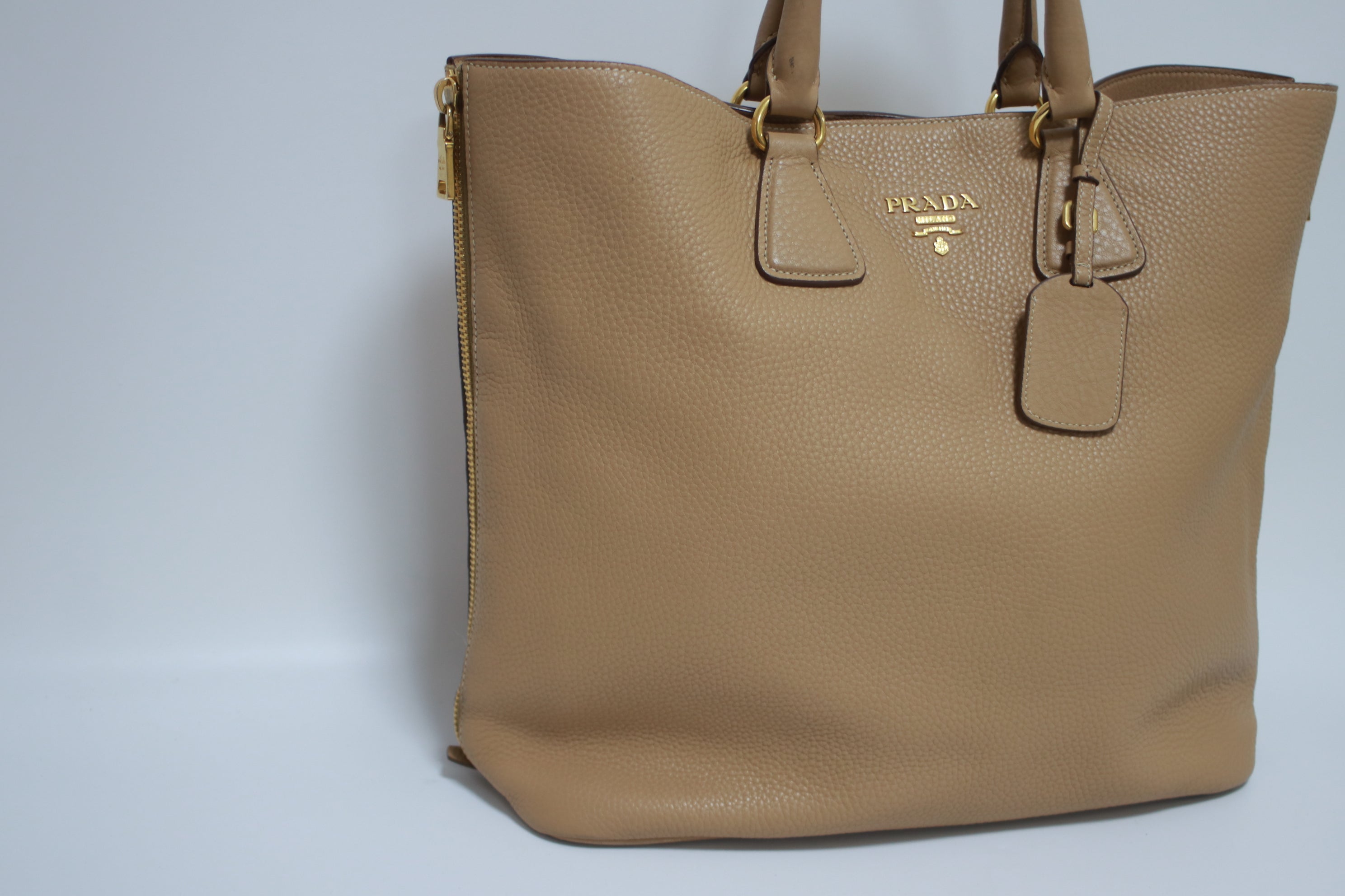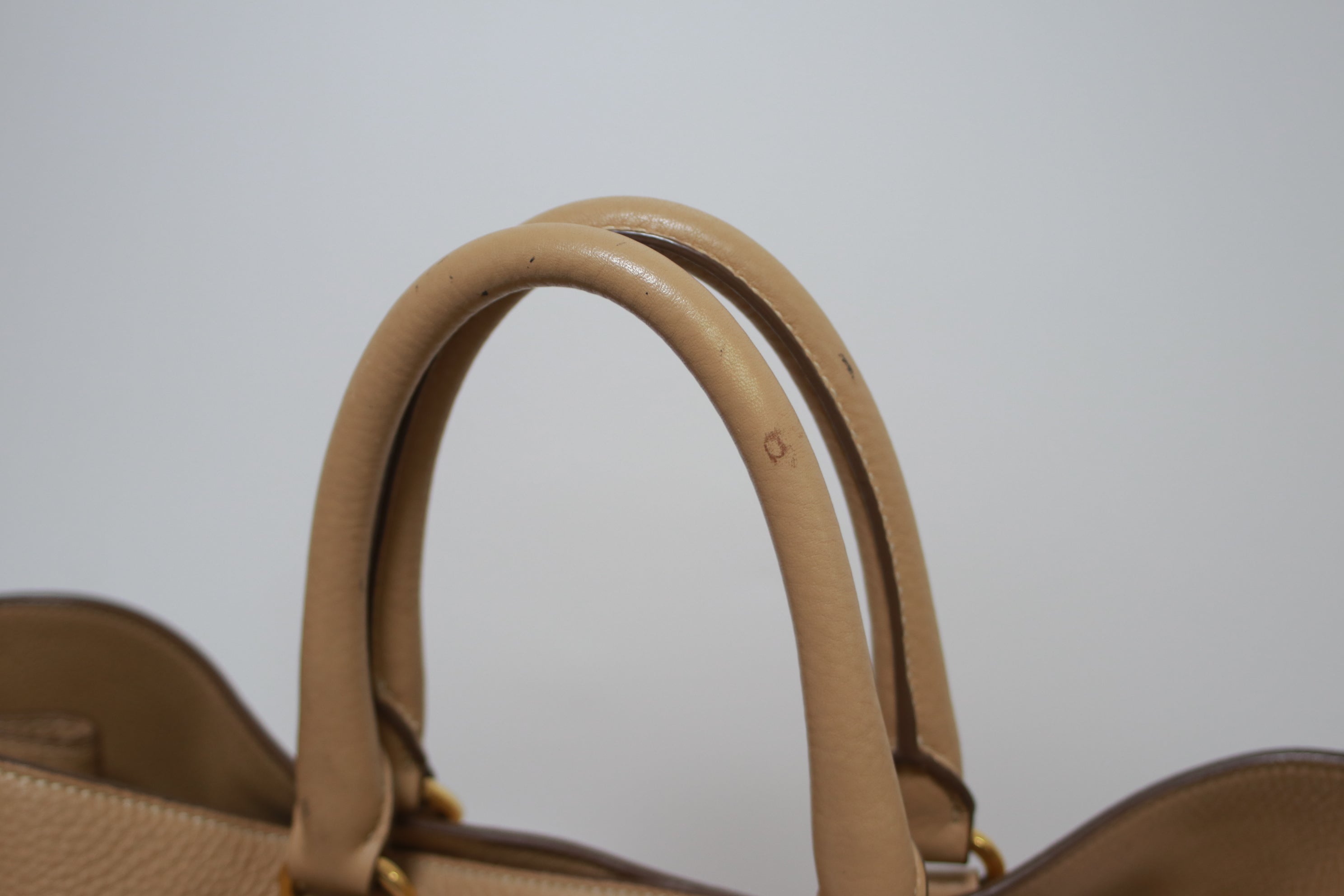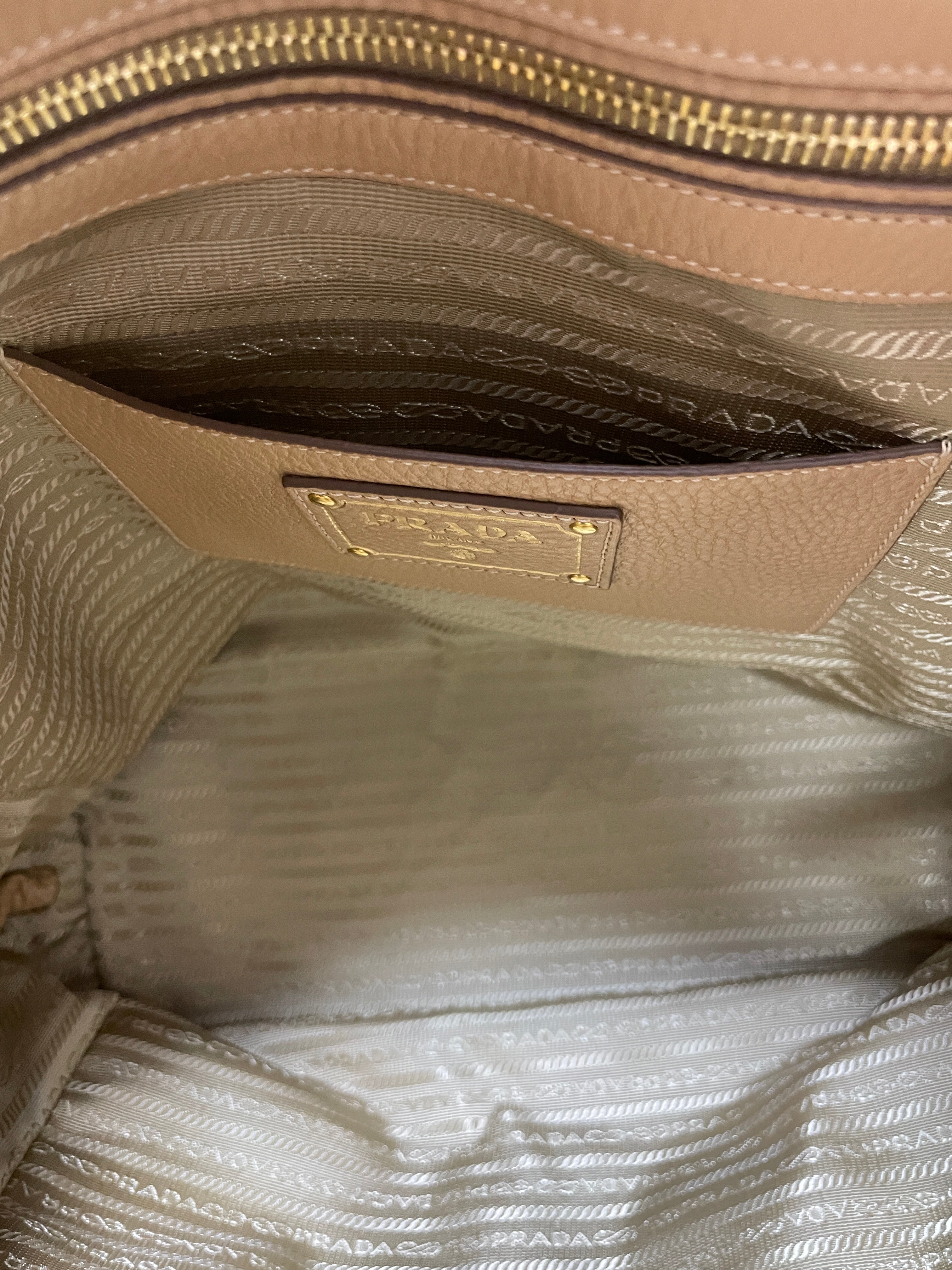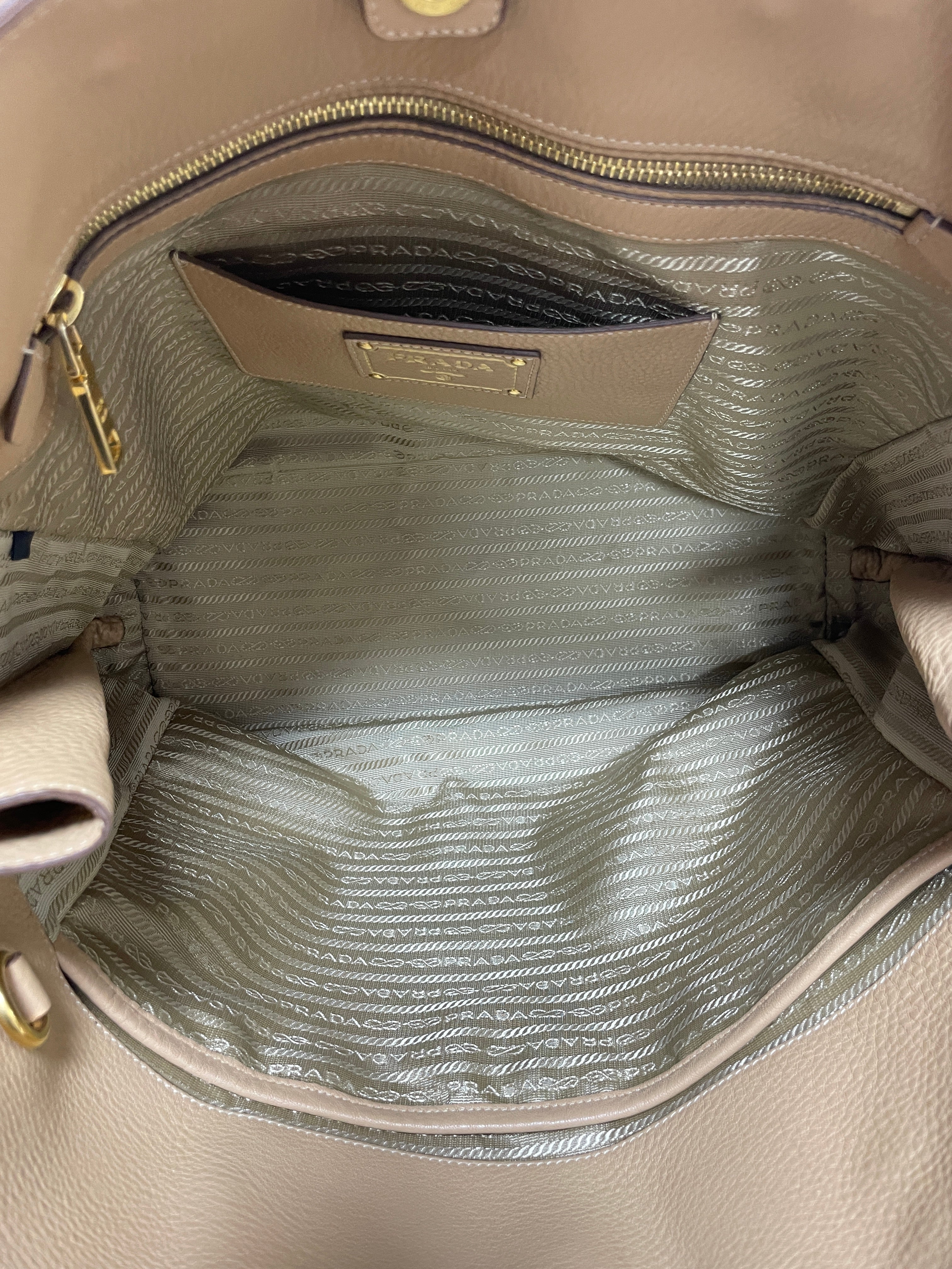 Prada Daino Leather Tote Bag Beige (no strap) Used