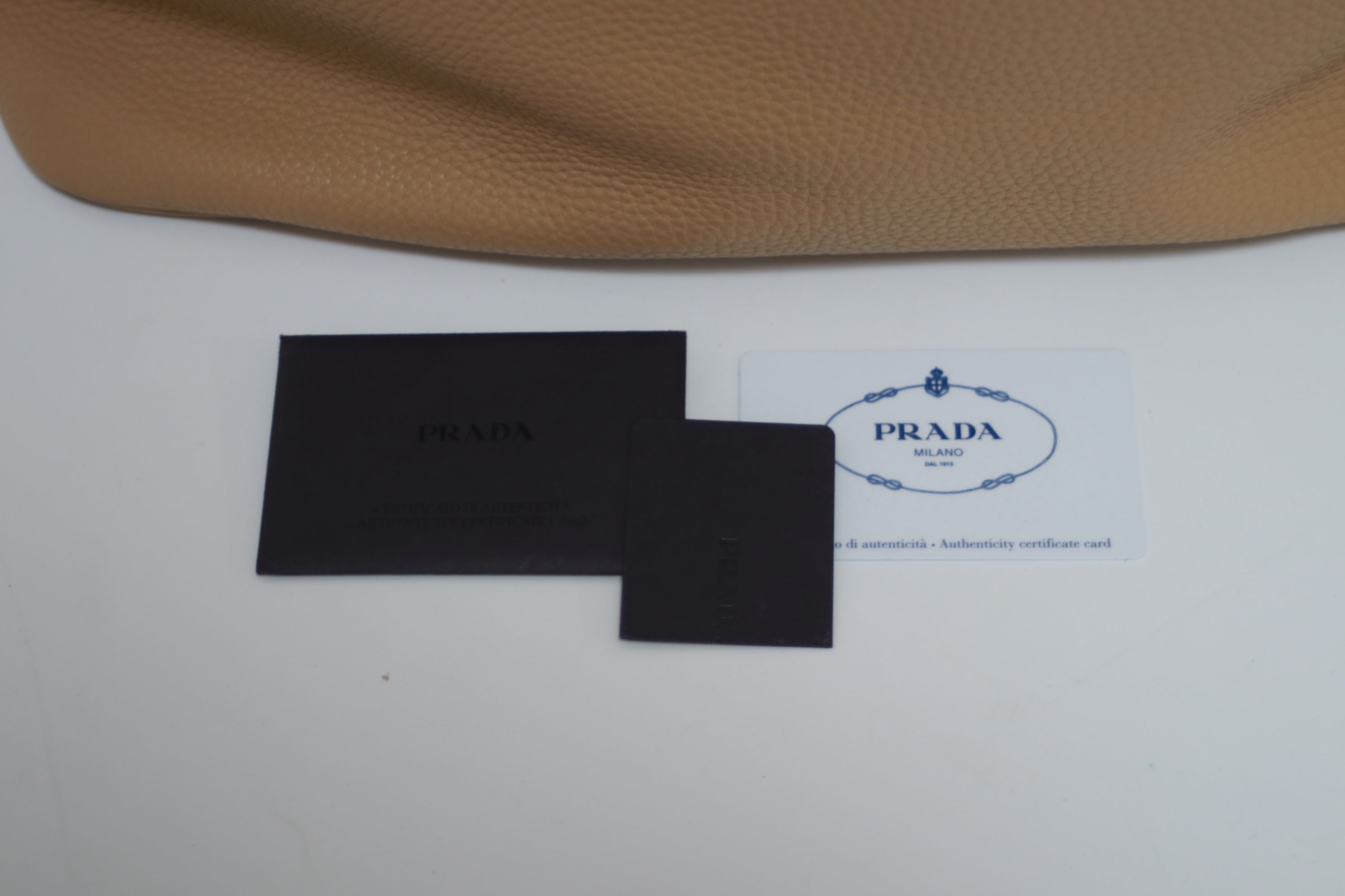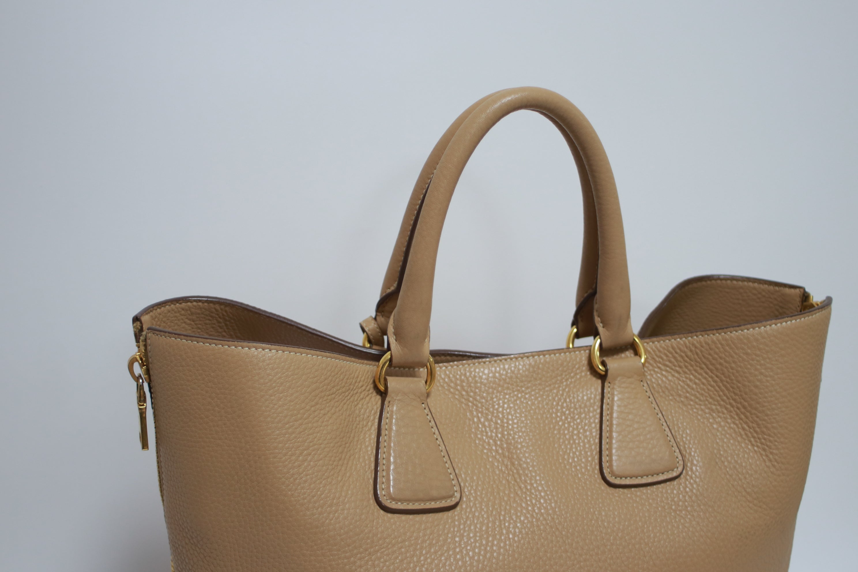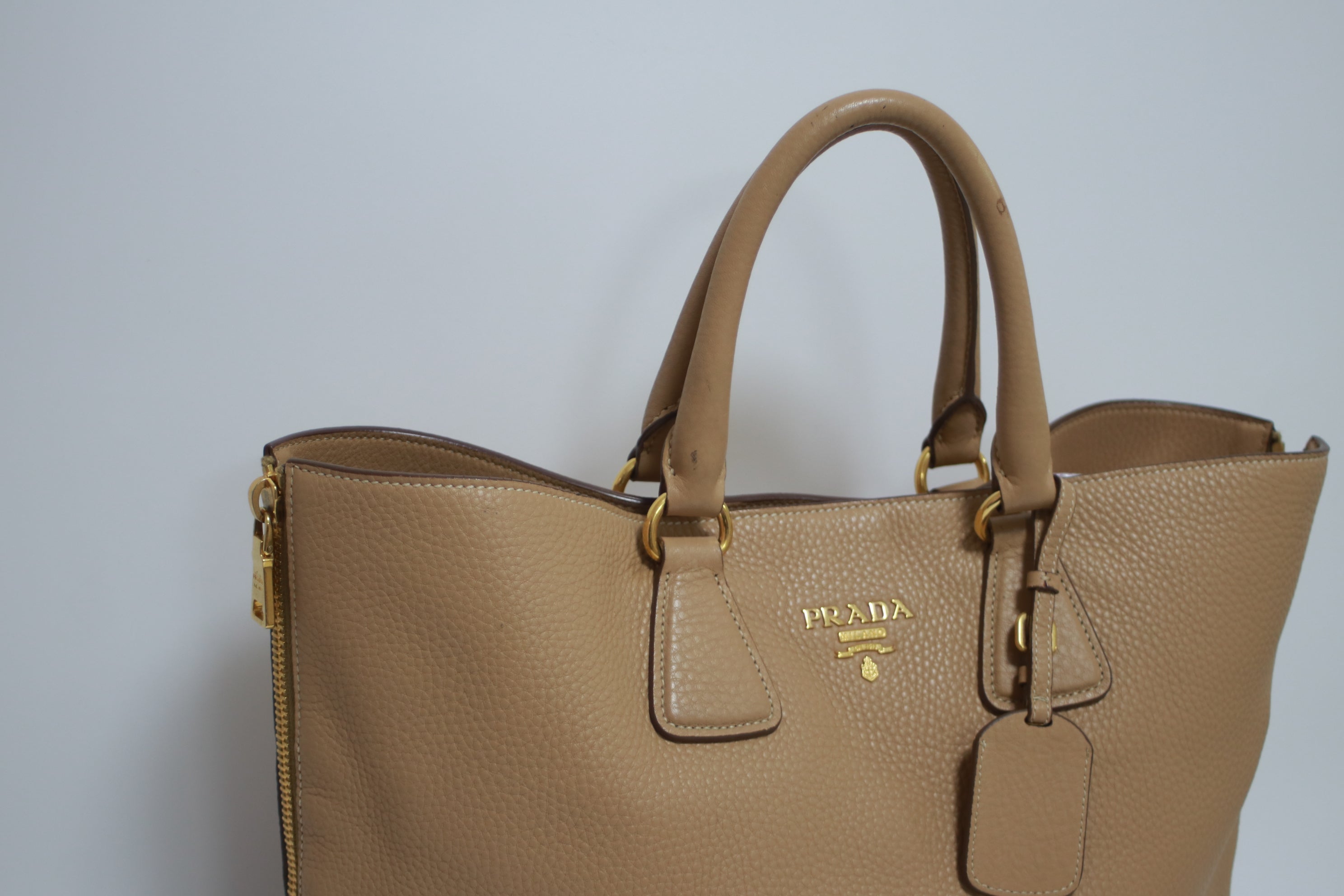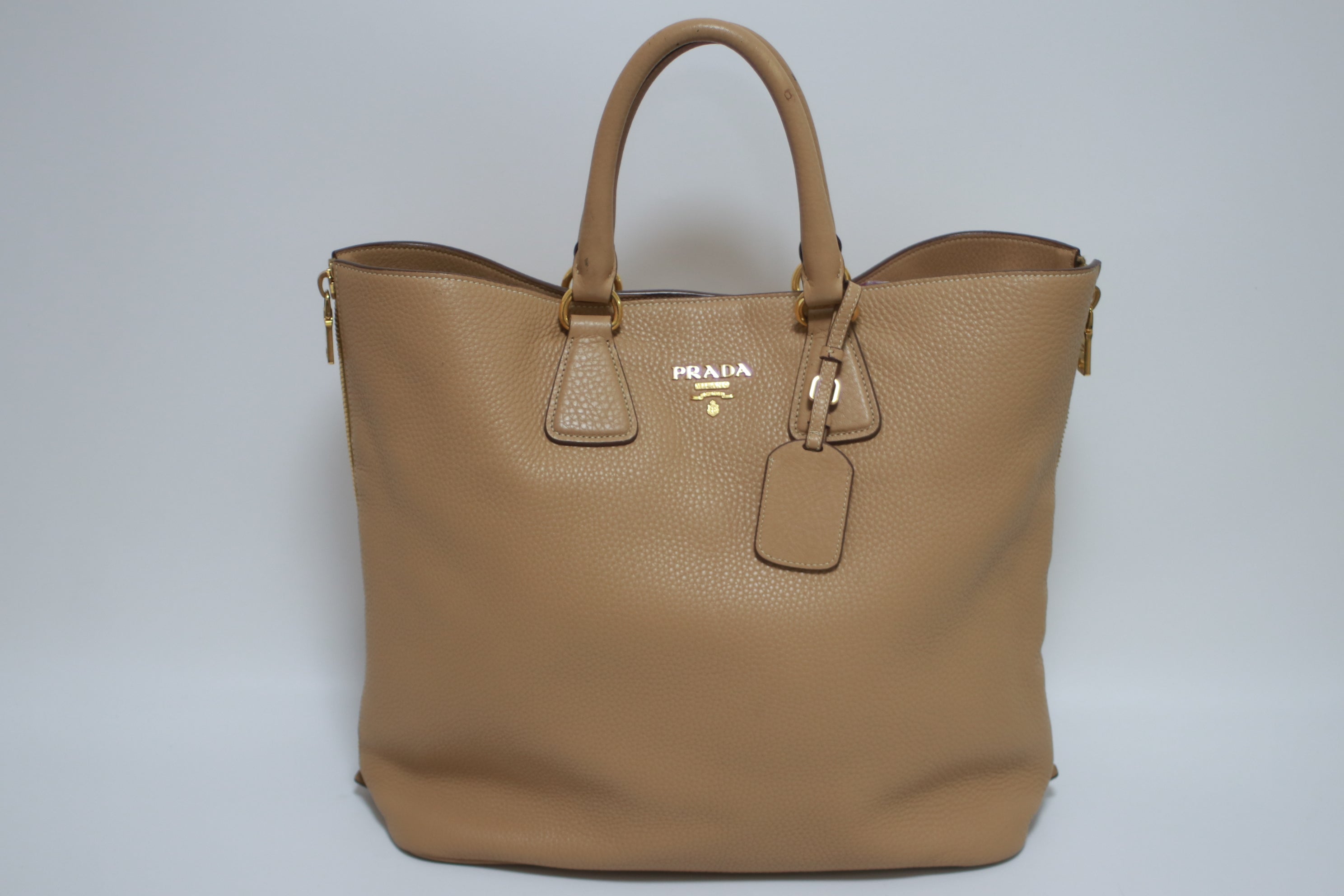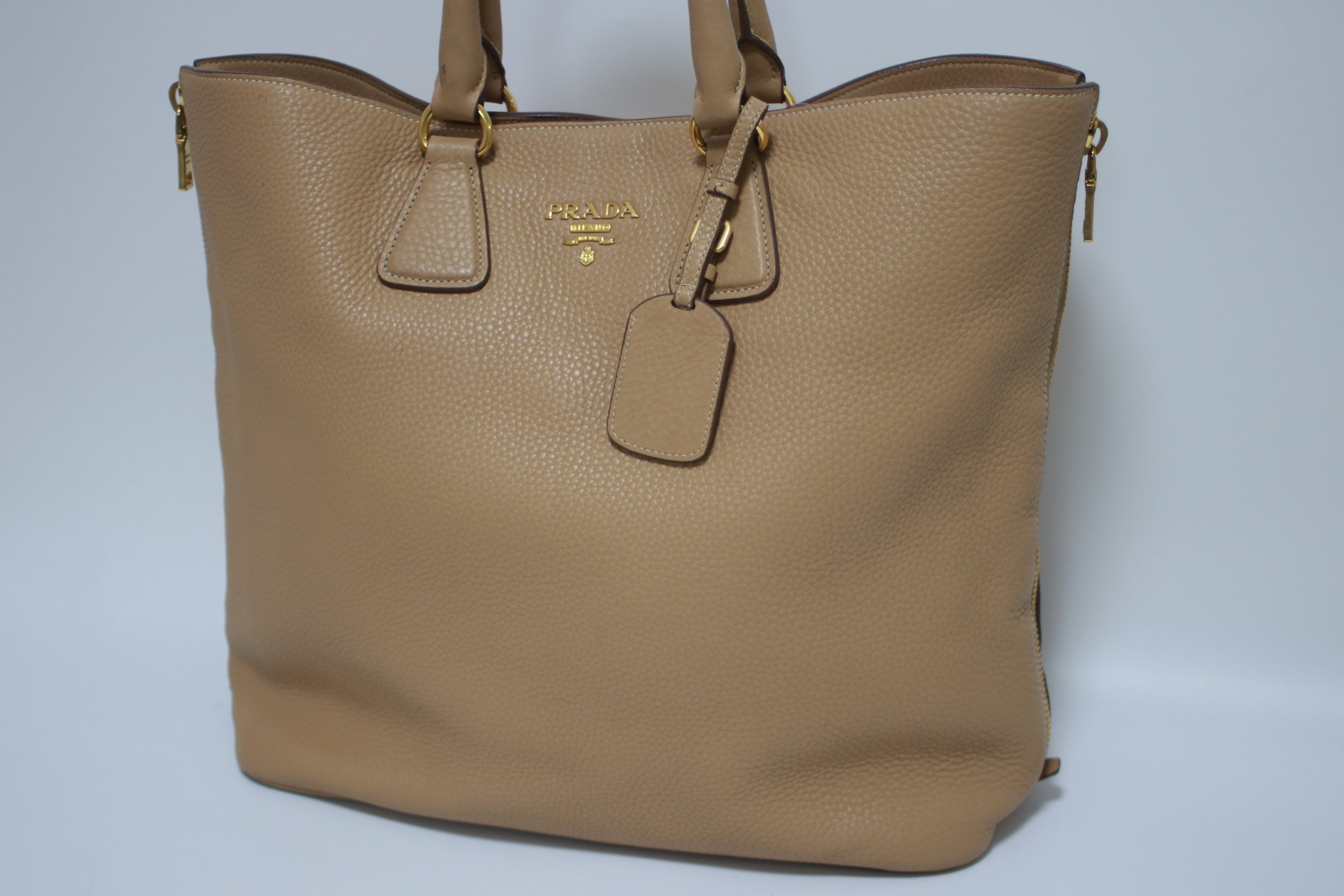 Prada Daino Leather Tote Bag Beige (no strap) Used