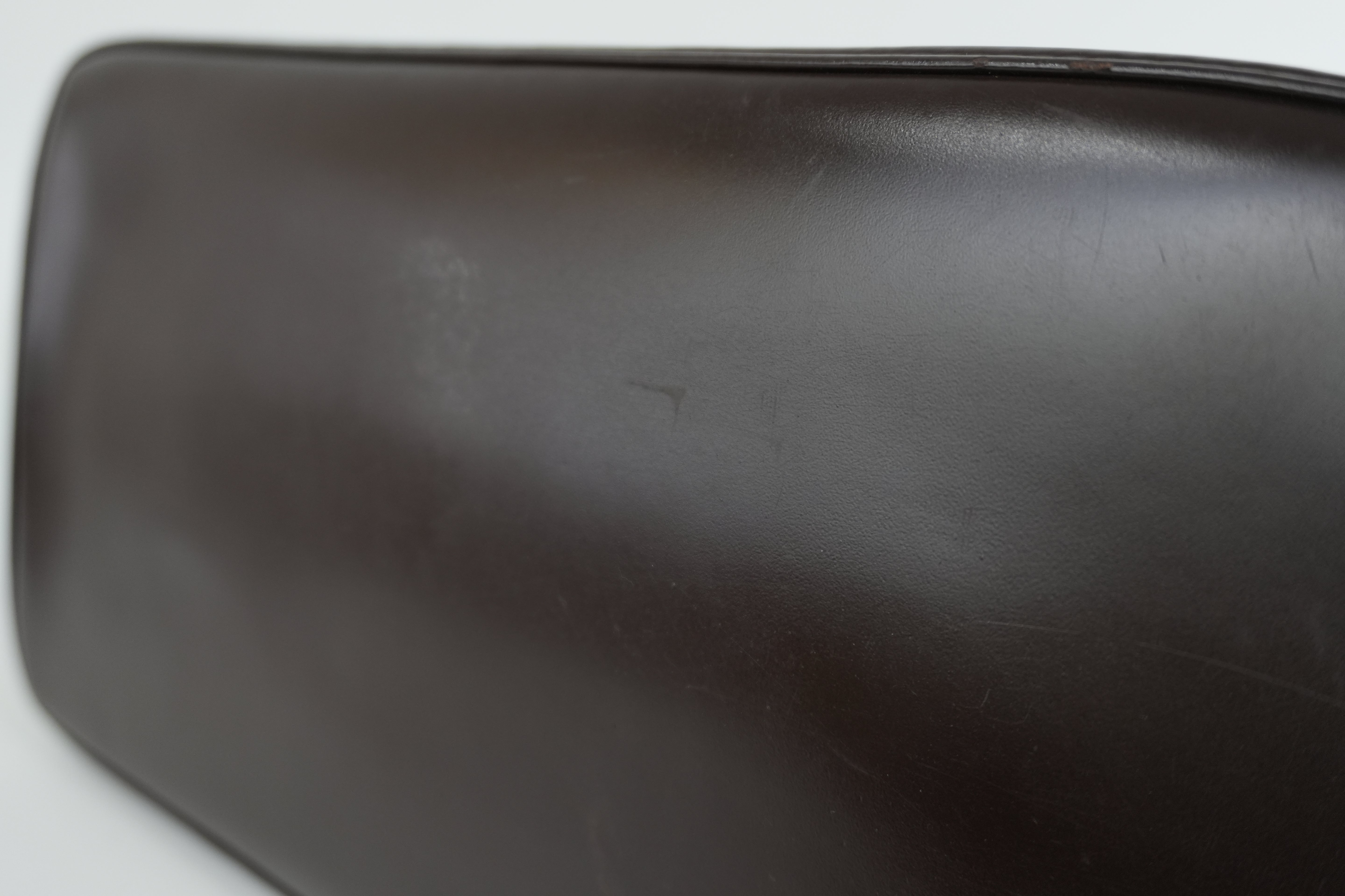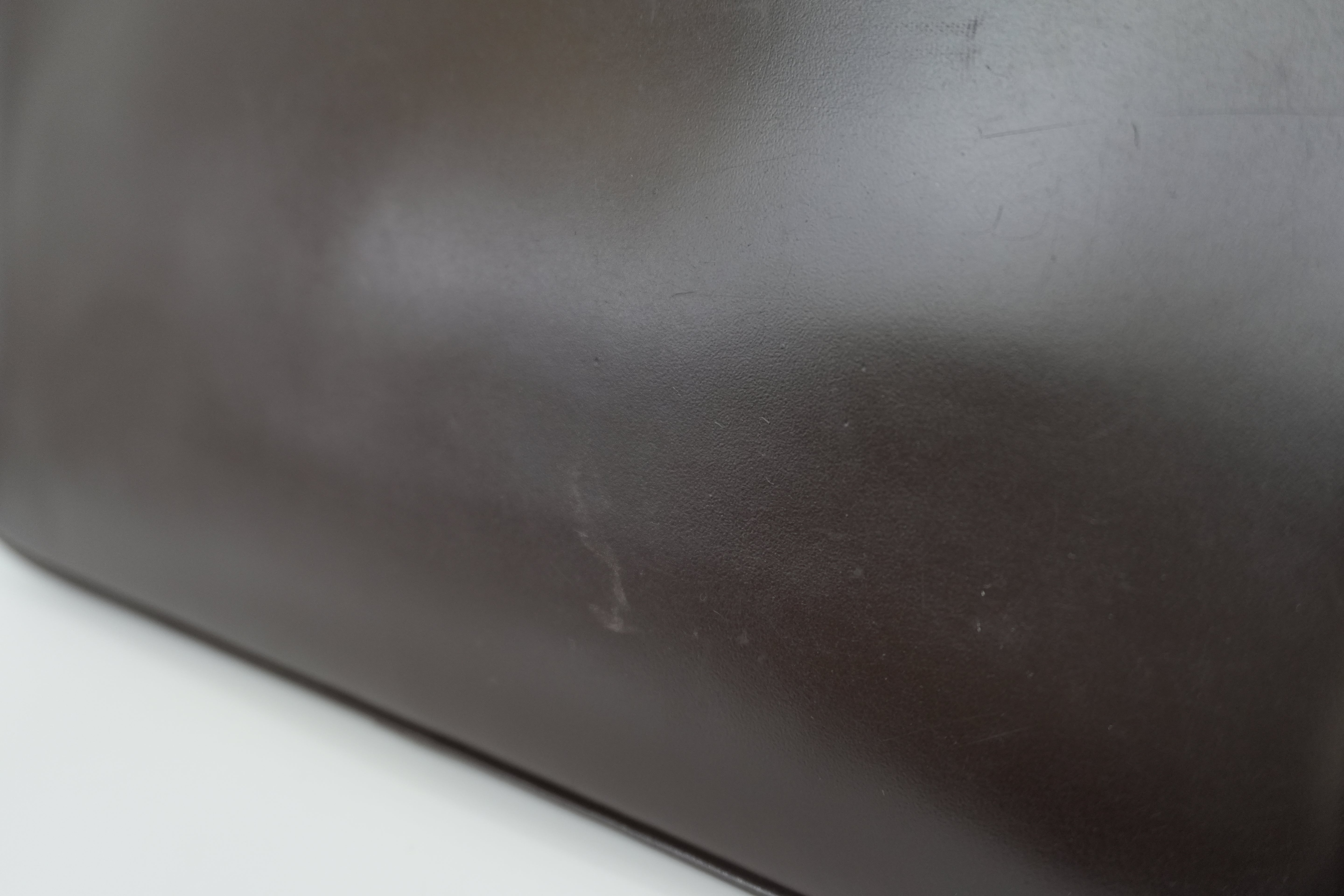 Leather: Signs of usage. Bottom corners have minimal rubs.