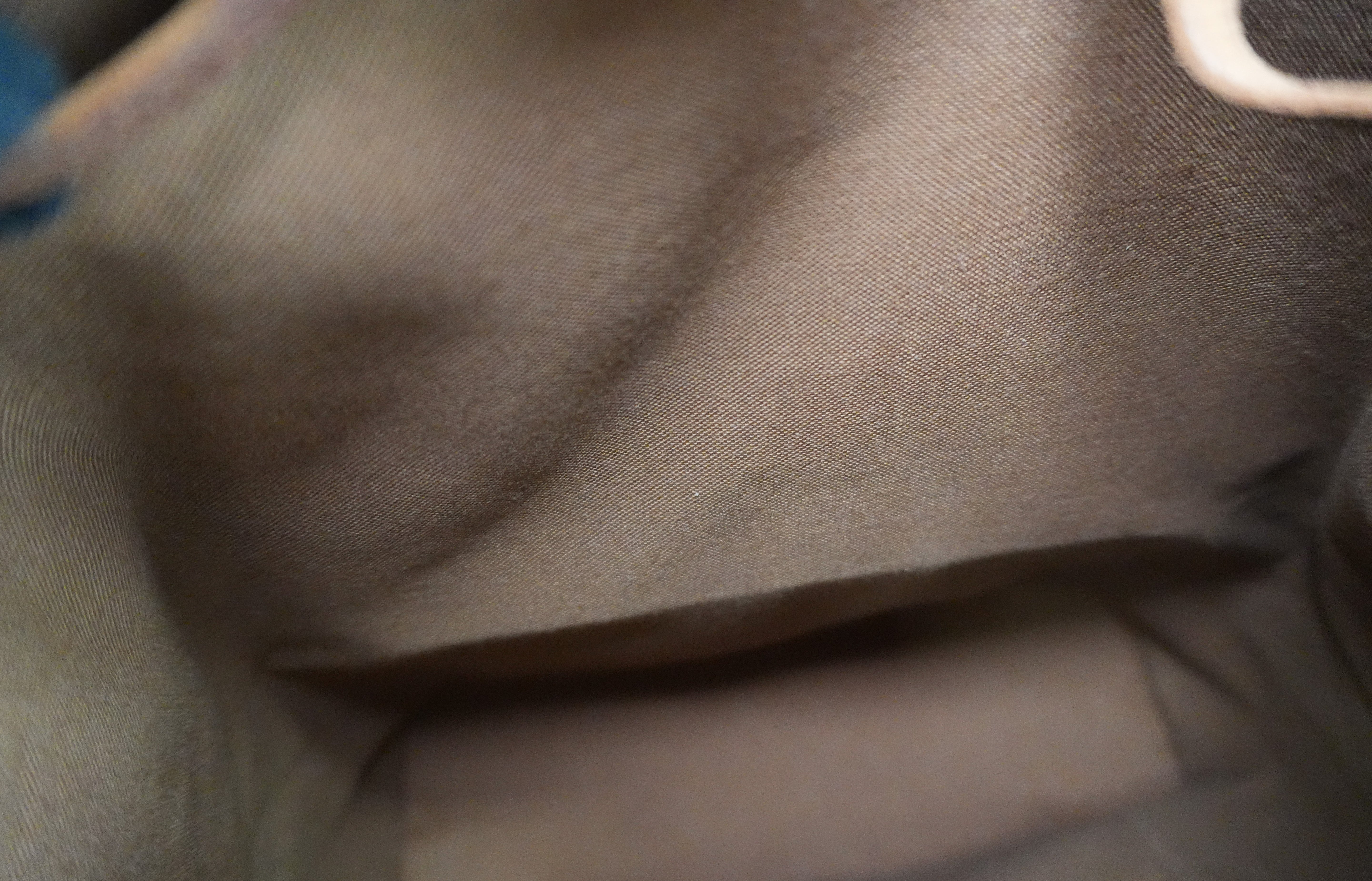 Leather: There are stains and dirt on most parts. Piping has rubs.