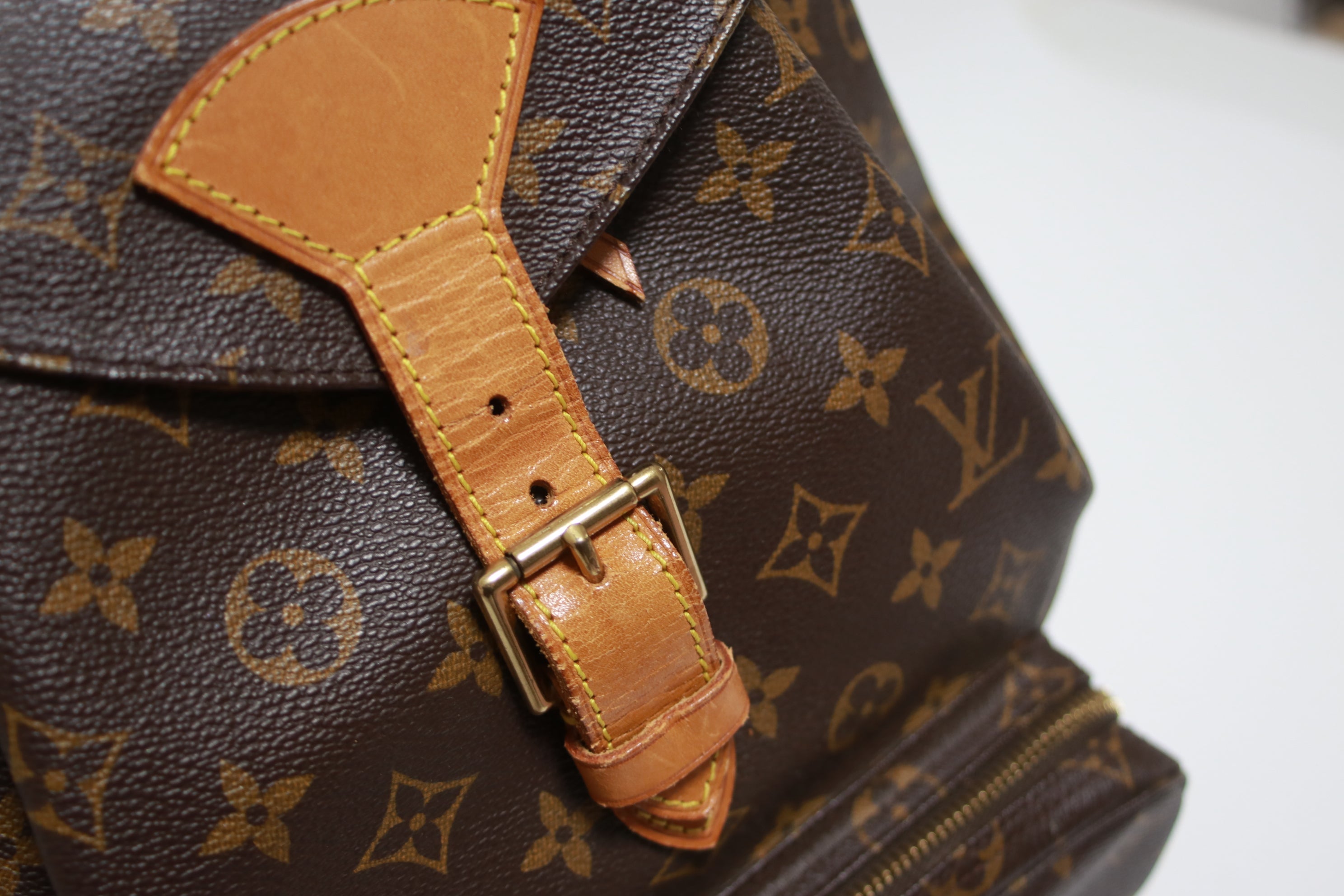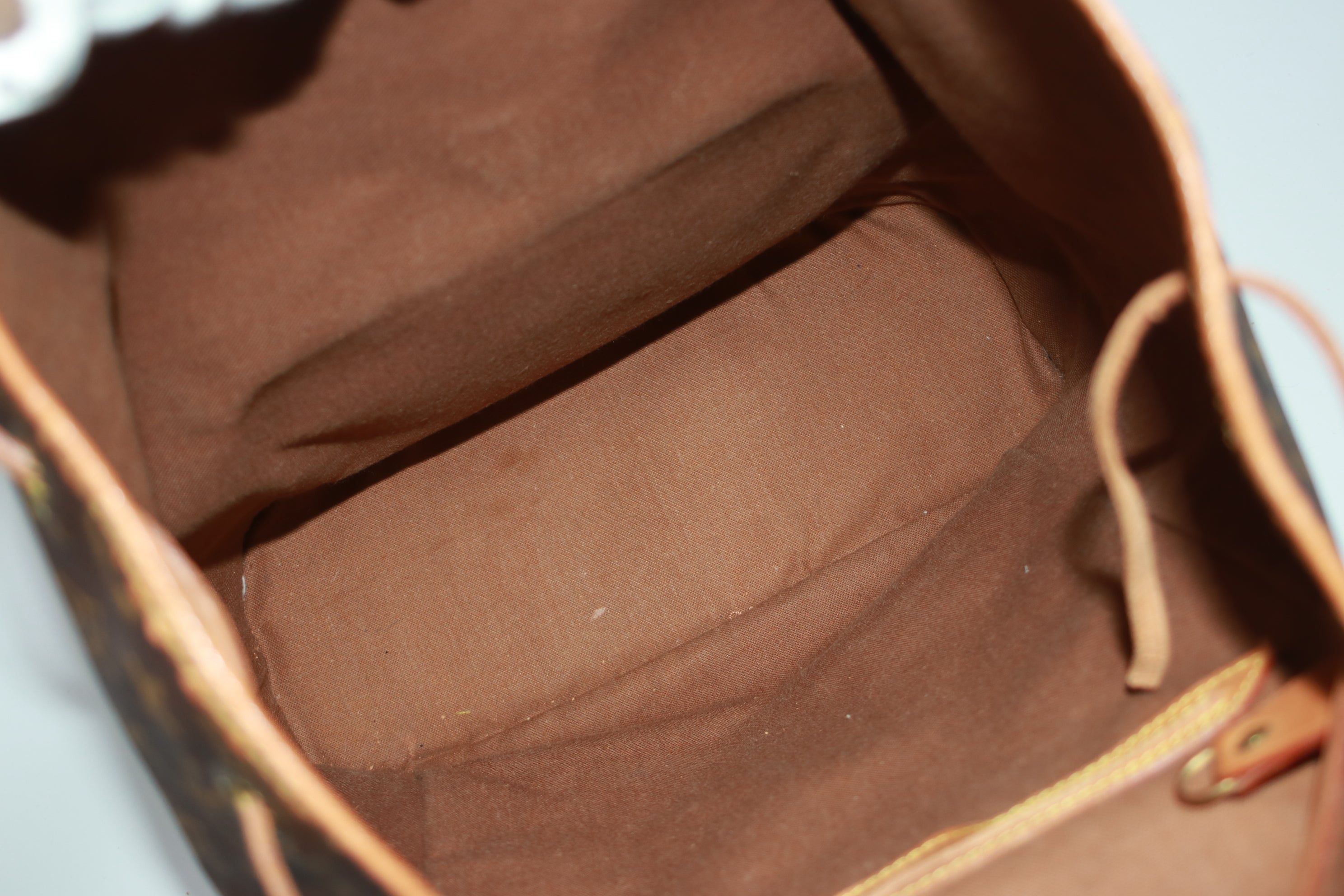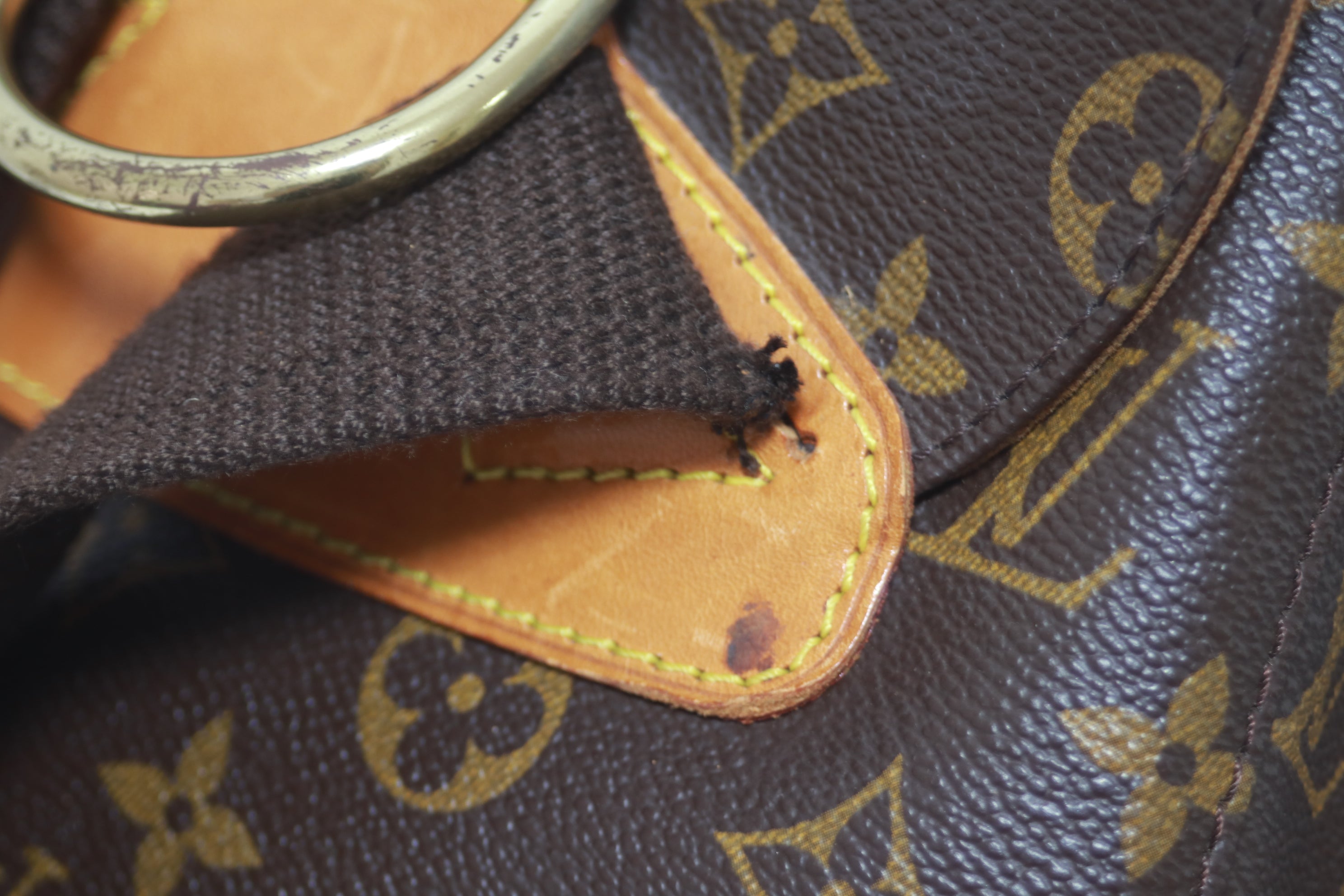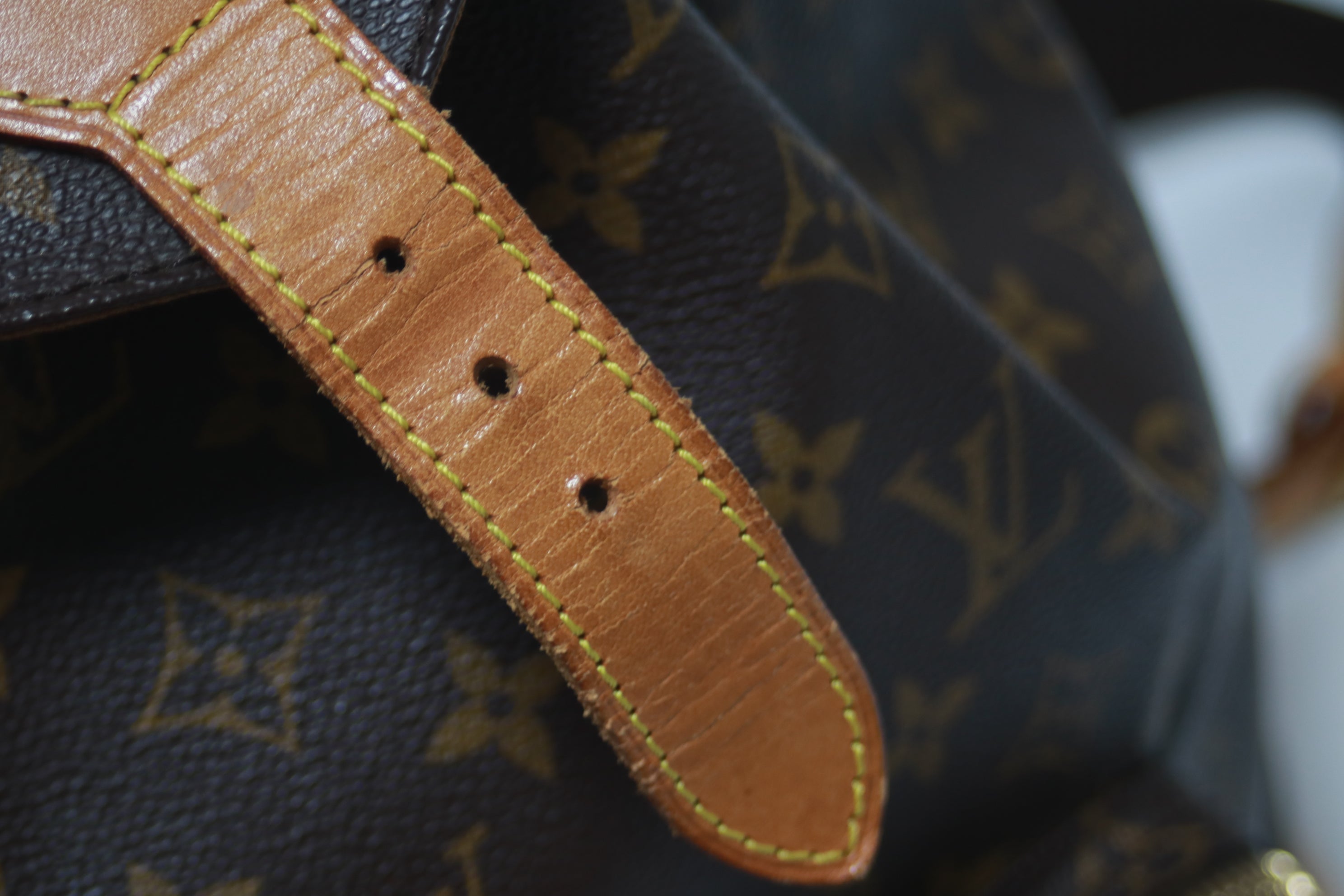 - Leather/ Vachetta: The leather part has signs of usage - some rubs and cut on the base of the strap.