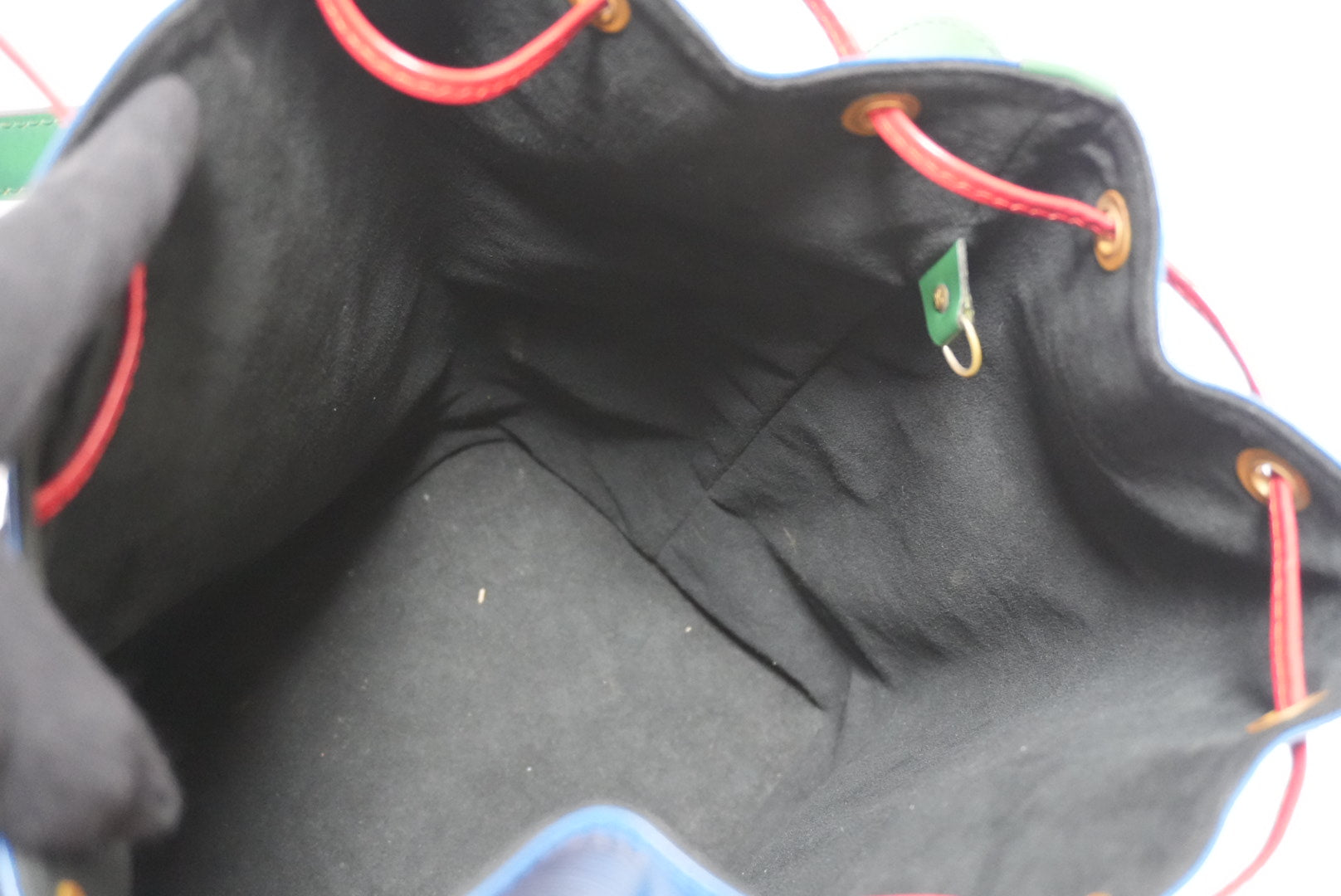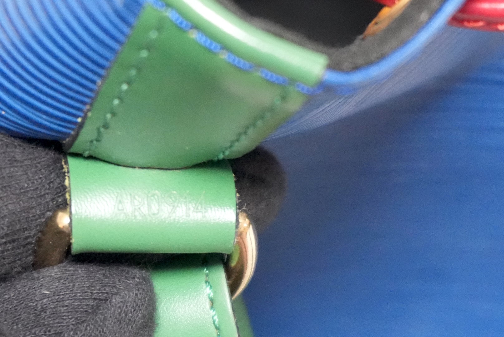 - Material/color: Epi leather / Blue, red and green