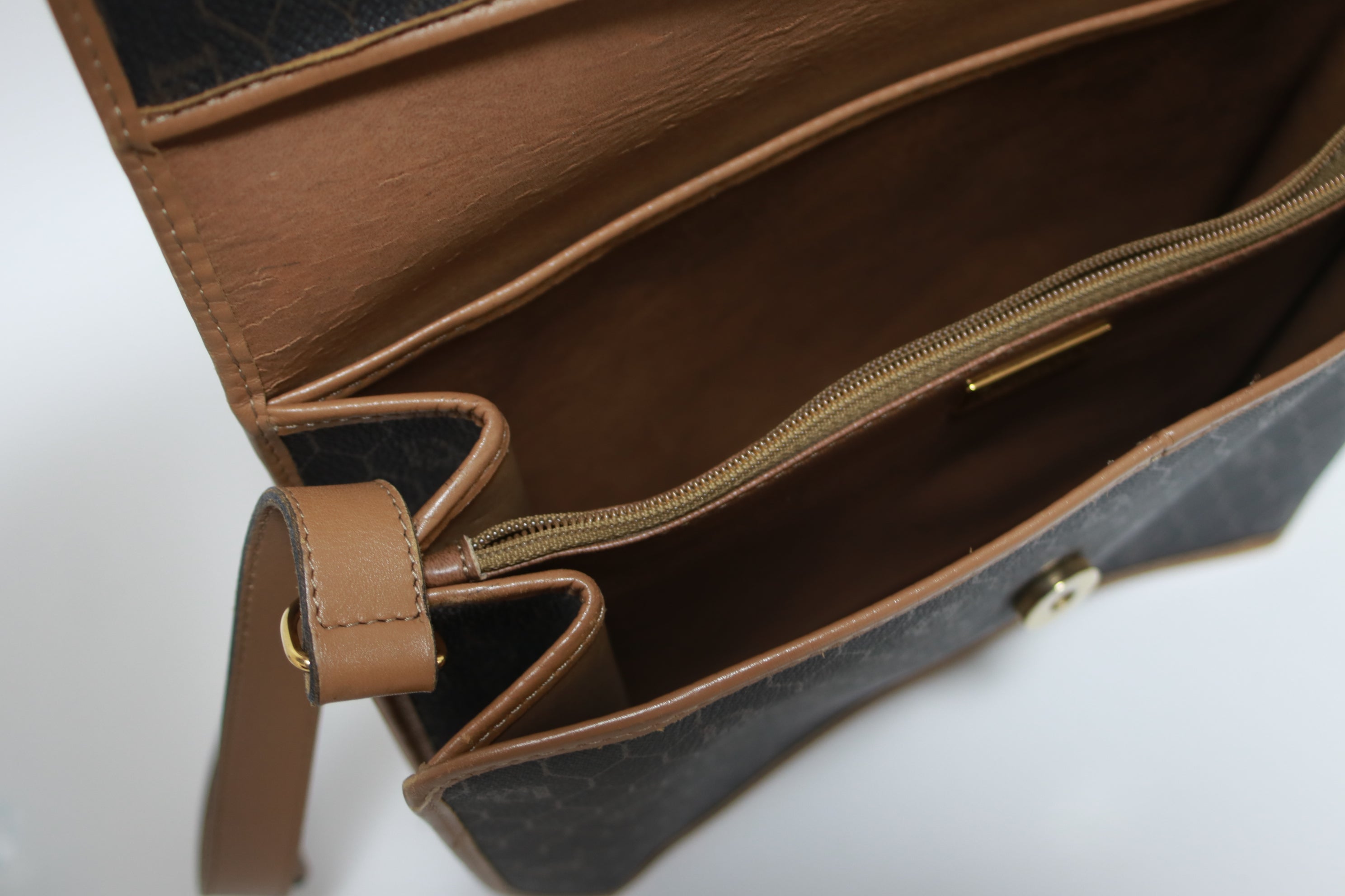 - Leather/ Vachetta: The leather part has rubs and surface cracks on the piping, but no major damage